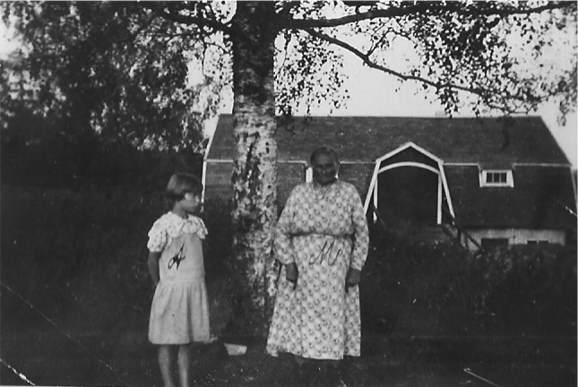 Pieni tyttö Kivimäen mummun seurassa on Aino. Tuohon aikaan vieläkin pienempi tyttö eli Ainon serkku Alli on ilmeisesti melko pian kuvanoton jälkeen selvyyden vuoksi merkinnyt kuvaan, kumpi on Aino (A) ja kumpi mummu (M). Aino on kertonut, ettei hän koskaan nähnyt äitiään. Vain kerran Ainon ollessa ehkä vieläkin pienempi kuin kuvassa, äiti tuli häntä Kivimäkeen tapaamaan. Sattui kuulemma niin, että Aino oli osittain unessa, kun äiti silitti hänen poskeaan ja sanoi: "Tässä on äiti." Aino oli ilmeisesti kuitenkin niin uninen, että nukahti melkein heti tämän jälkeen ja kun heräsi, oli äiti jo mennyt. Aino oli Kivimäen mummun hoidossa, koska Ainon oma äiti oli sairas, eikä pystynyt lapsestaan huolehtimaan. Äidissä oli ainakin paha nivelreuma ja hän kuoli Kellokosken mielisairaalassa. Kuitenkaan hänessä ei tiettävästi mitään psyykkistä sairautta ollut. Kivimäen mummu kävi Ainon hakemassa Vanhankylän kartanosta, kun Aino (s. 12.1.1925) oli noin vuoden ikäinen.