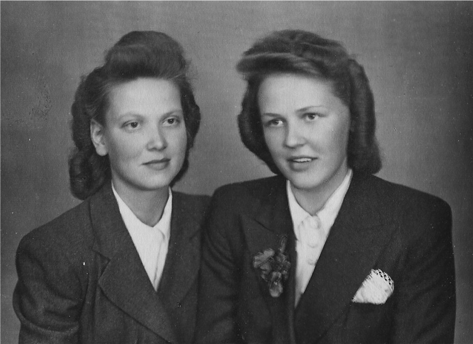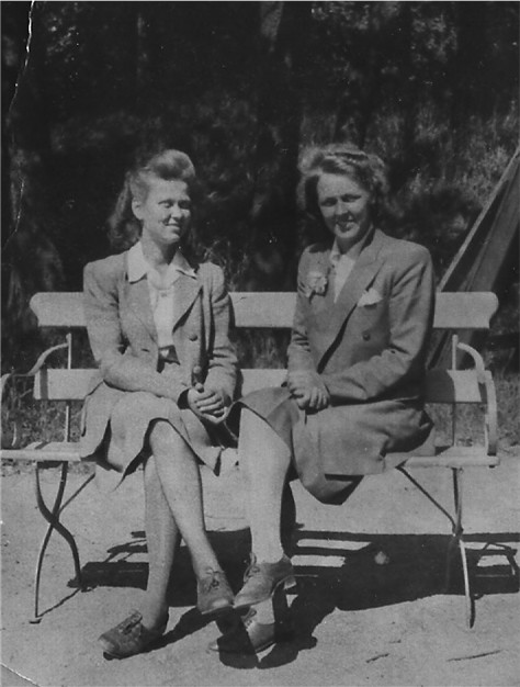 Näissä seuraavissä kuvissa ovat jo noissa edellisissäkin kuvissa olleet serkukset Kivimäen Aino (vas.) ja Alli. Alli kertoi juuri, että Aino oli hänen paras kaverinsa ja he viettivätkin paljon aikaa yhdessä. Albumiin ensimmäisen kuvan yläpuolelle on himmeästi kirjoitettu: "Helsingissä kesällä 1946" ja vastaavasti jälkimmäisen kuvan alapuolelle: "Korkeasaaressa kesällä 1946".