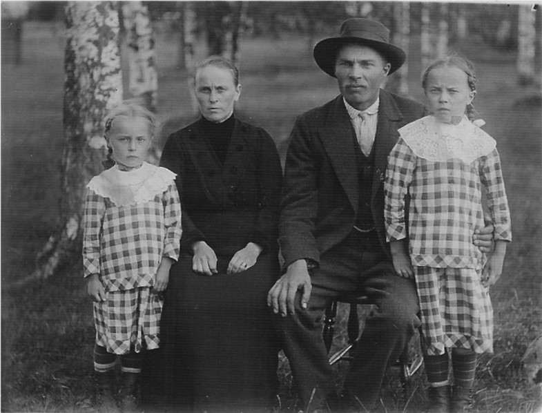 Tässä koko perhe. Vasemmalta: Tyyne, Lyyti, Ville ja Martta.