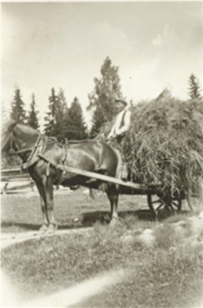 Alapuolella on vielä kaksi kuvaa Mäntylän Villestä. Ensimmäinen heinienajokuva on otettu todennäköisesti Mäntylän pihalla. Mäntylän talohan sijaitsi nykyisen Vaasan Yksityistien varrella, noin puolitoista kilometriä Jokelantieltä, vasemmalla. Paikalla on nykyisin ilmeisesti Riolan omistamat hallit.