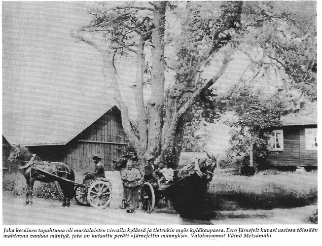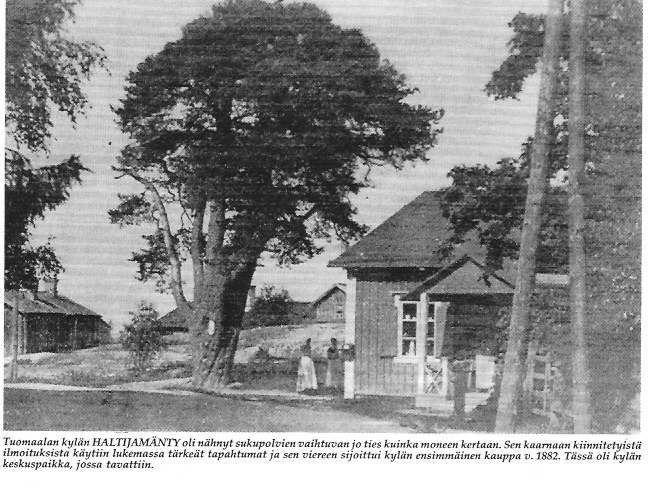 "IKIVANHAAN TUOMAALAN KYLÄKESKUKSEEN jatkuu matkamme Rantatiellä. Paikalla lienee kylä sijainnut jo 1300-luvulla ja jonkulainen 'rantapolkukin' on varmaan johtanut lähikyliin. V. 1680 tämä tie päätettiin kunnostaa kärrytieksi, jota pitkin päästiin Heinolasta käsin Ohkolan ja Tuusulan kautta Helsinkiin. Vuosisatojen kuluessa ovat lukemattomat ajoneuvot nousseet Tuomalan kylän mäelle. Siitä on kuljetettu hevospelein kaikkea mahdollista myytävää Helsinkiin saakka, siitä on 'heinolankarjaa' viety ja siitä on jyristellyt ensimmäinen auto Rantatiellä paikkakuntalaisia pelästyttäen.