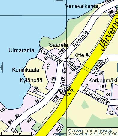 Tuomaalan kylä sijaitsee Järvenpäästä päin tultaessa melkein aivan Rantatien alkuosassa. Tuossa edellisessä kuvassa oleva RANTATIEN GALLERIA on esim. noin karttaan merkityn numeron 123 kohdalla.